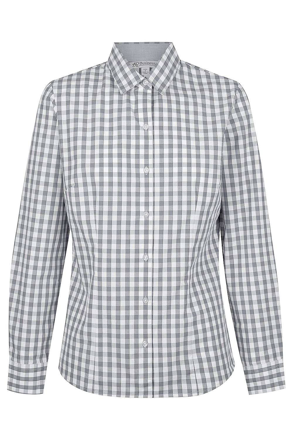 “Magic button” on the inside placket to prevent the shirt from gaping at the bust.