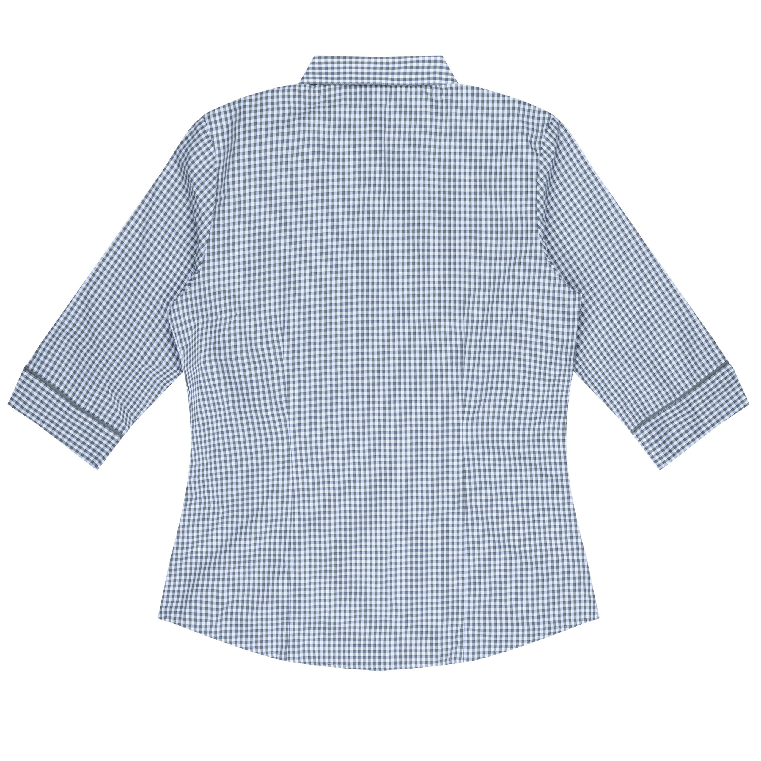 Edge stitched placket with tonal tape trim on under button placket and long sleeve cuff.