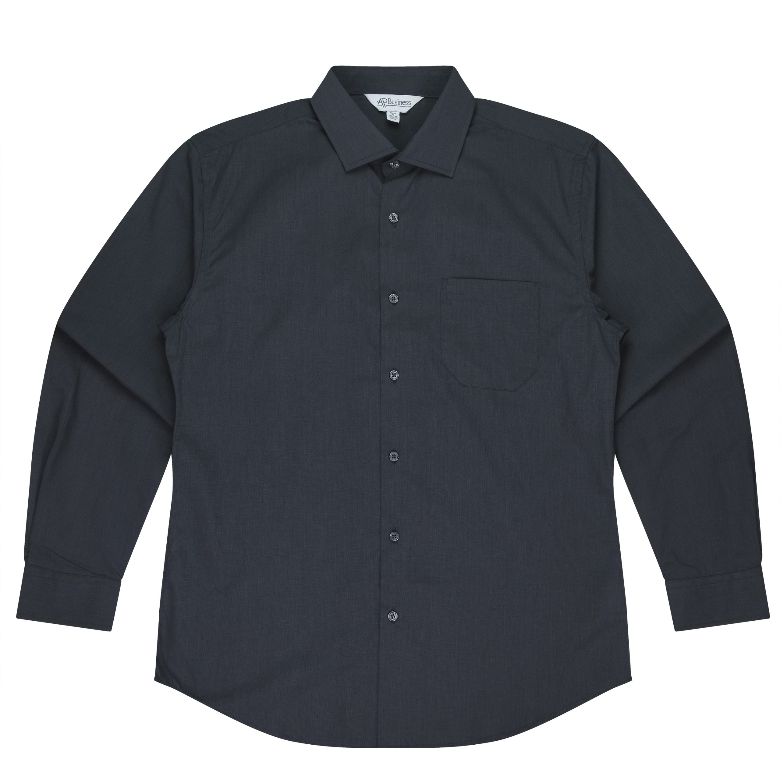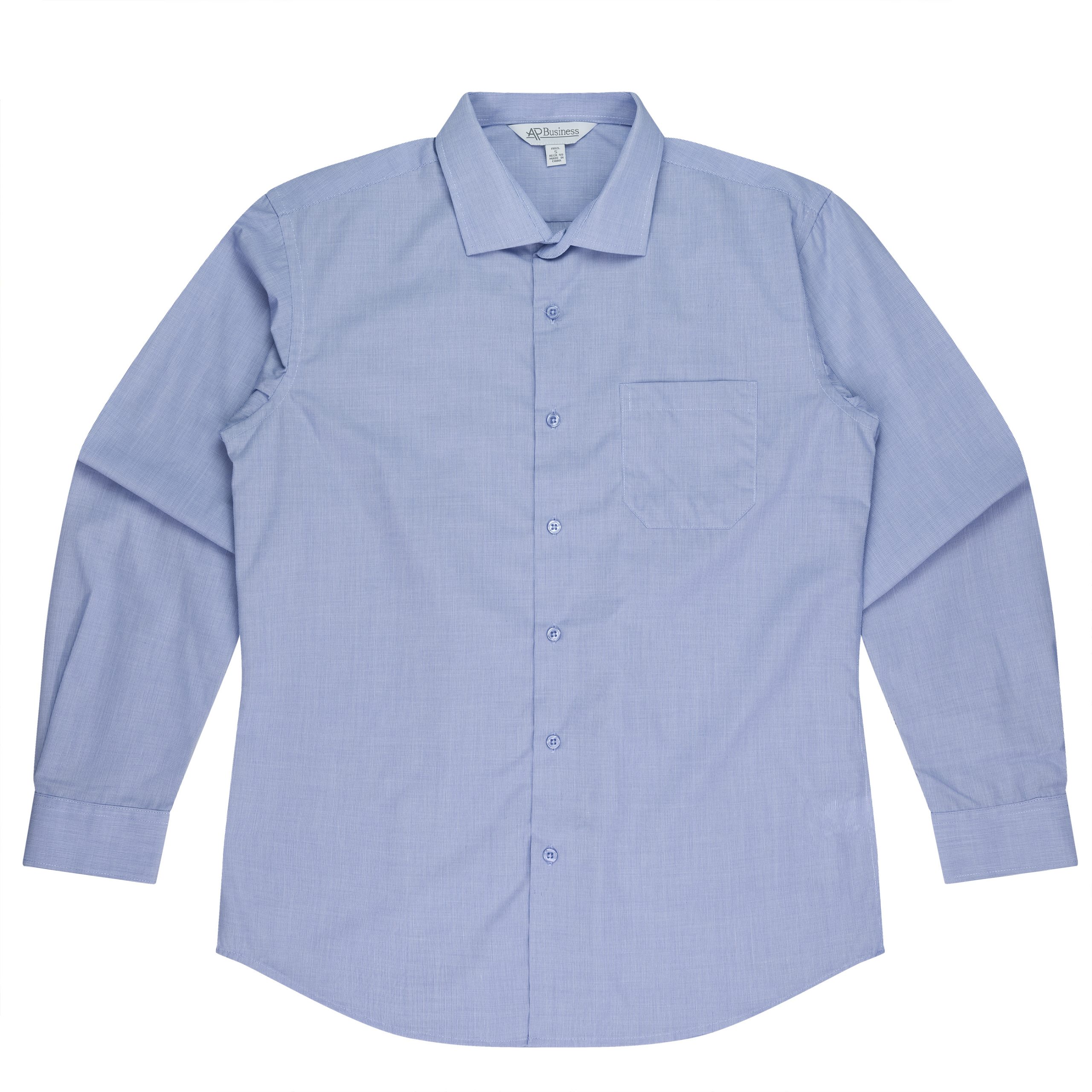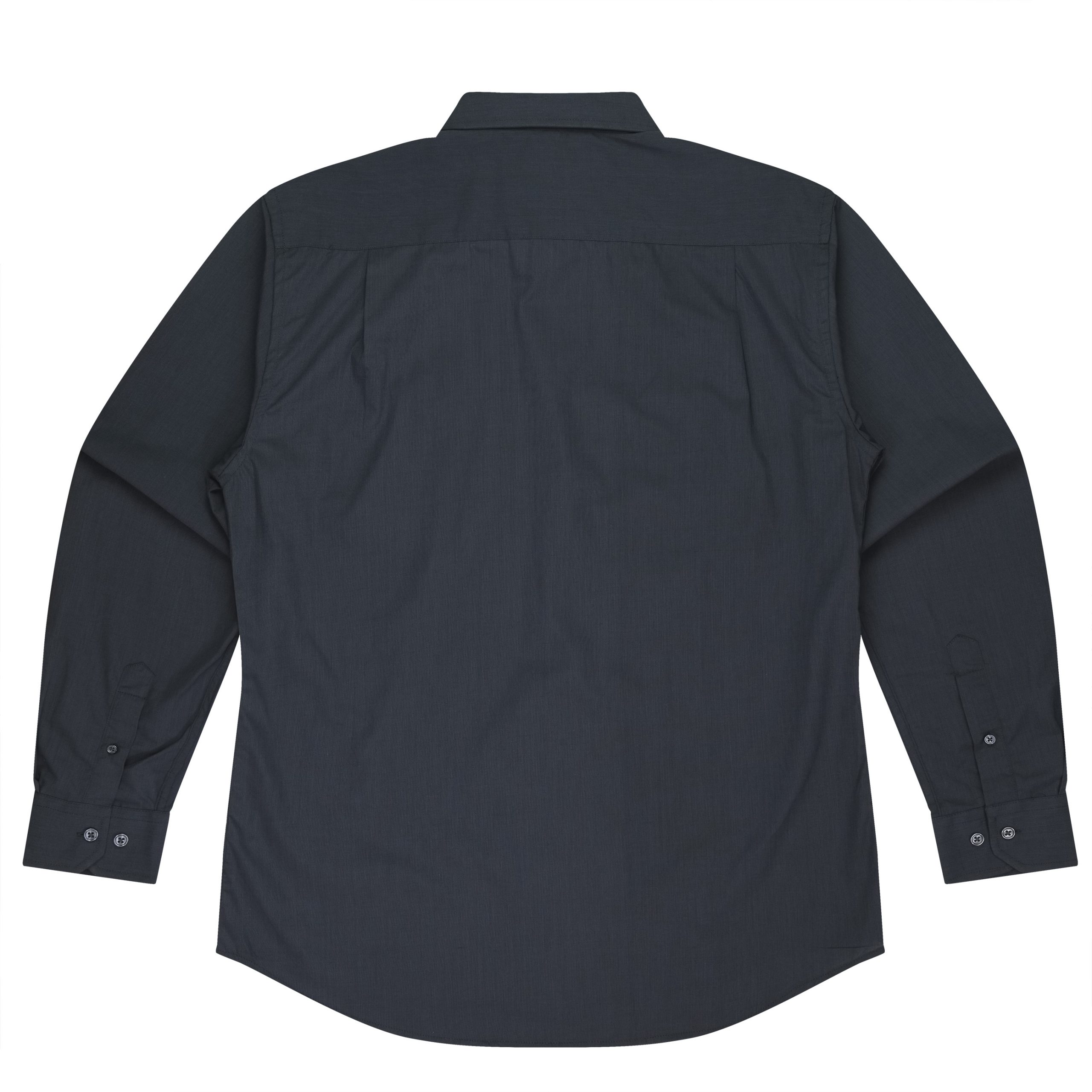 This shirt features a doubled turned placket with an angle edge on the long sleeve cuffs.