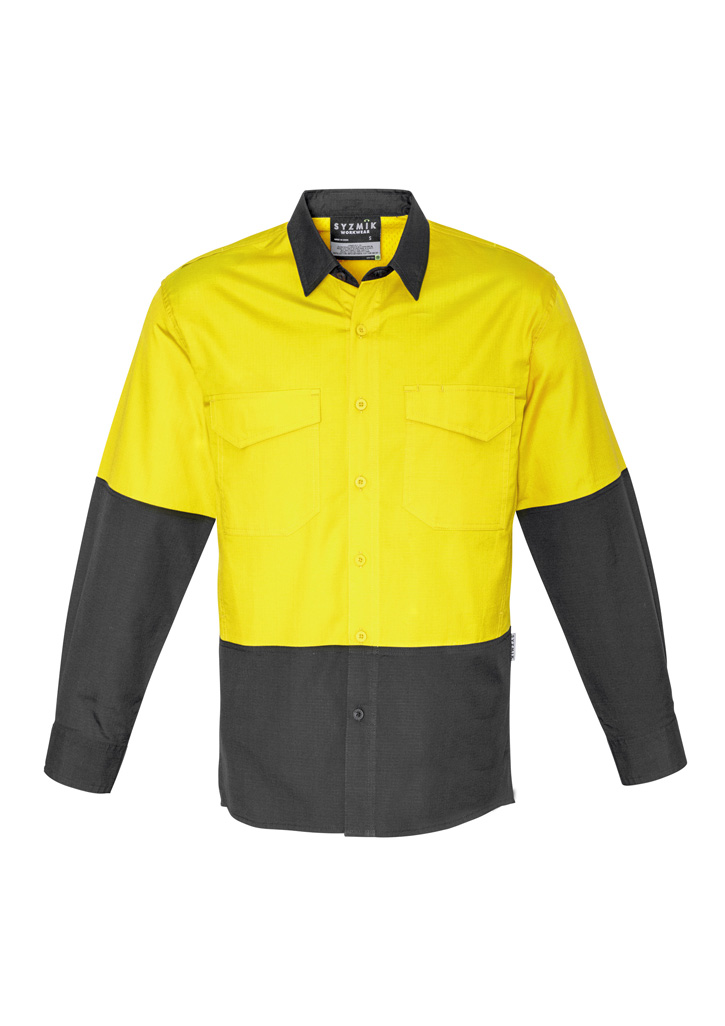 Fabric: 100% Square Weave Cotton Ripstop, 145 GSM, Features: Mesh venting to increase breathability in the under arm, upper back, and back side seam, Mechanical stretch to give you more freedom of movement, 2 Chest pockets with pen partition, Reinforced at all key stress points with bar tacks, Modern fit