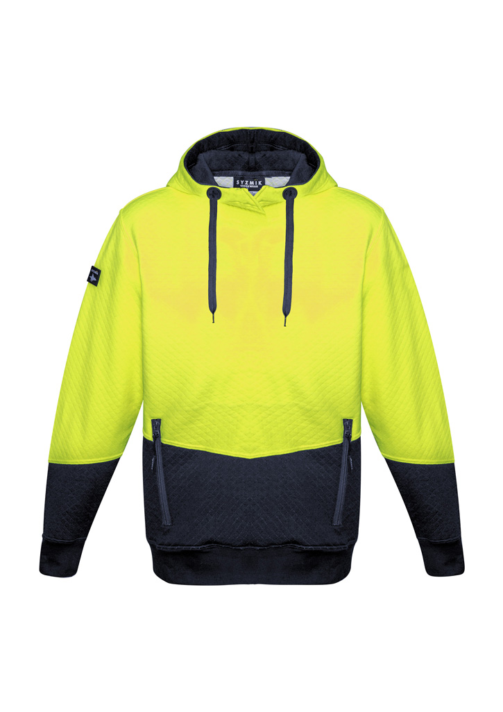 Fabric: 60% Polyester 40% Cotton – 300 gsm, Features: Unique textured fabric for modern look and feel,High cottoncontent for soft comfortable feel,Two waist pockets with zipperclosure so you never lose anything again,Chunky draw stringdetail,Ribbed elastic cuff and waist to ensure this hoodiedoesnt get in the way when youre working